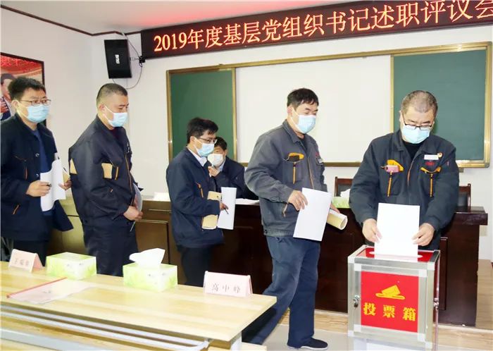 由参会人员依据发言人述职、点评情况,本着认真、客观、公正的原则,对各基层支部书记履行全面从严治党责任和抓基层党建工作情况进行现场测评打分。